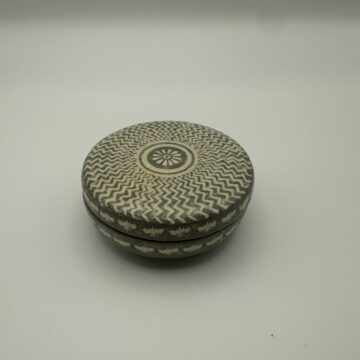 李秀承《象嵌香合(白磁象嵌文・花文)》